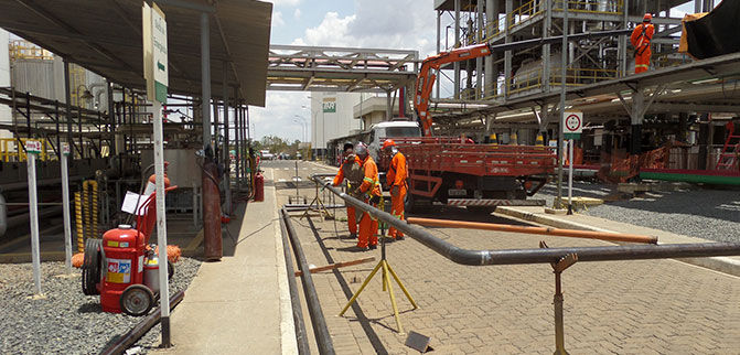 A Souza Pina executou a montagem de todas as tubulações de aço carbono e aço inox, pipe rack e integração ao sistema de produção da fábrica, além do projeto executivo e montagem de estruturas metálicas para suporte das tubulações.